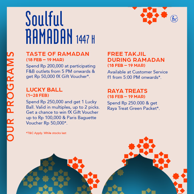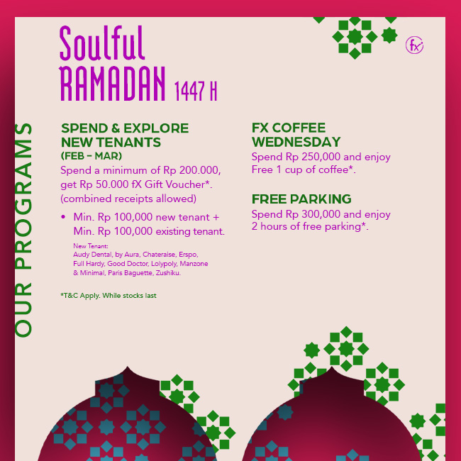Temukan berbagai promo di setiap bulannya, dan tukarkan segera di fX Sudirman.